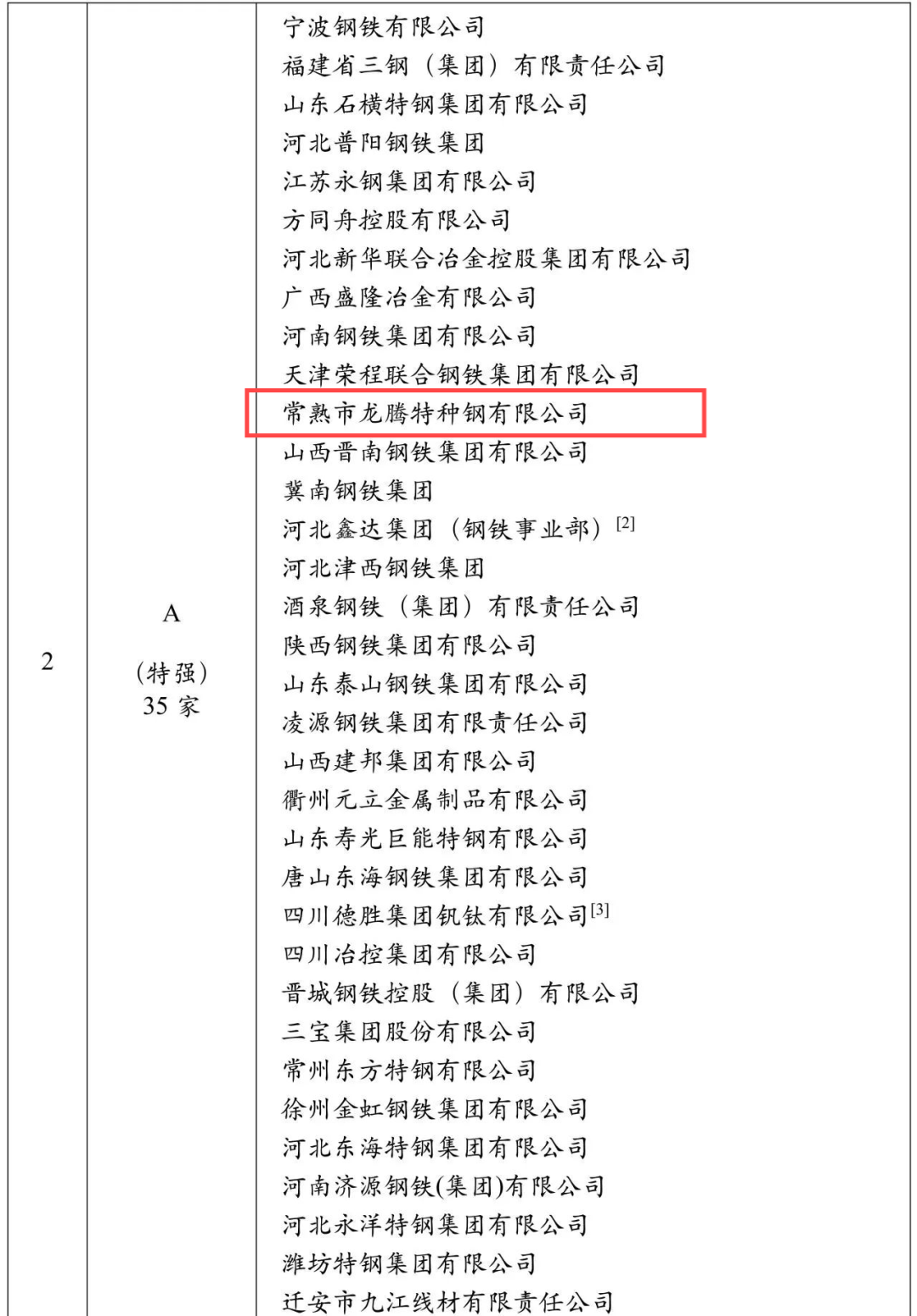 龍騰特鋼被評為A(特強(qiáng))級企業(yè)。